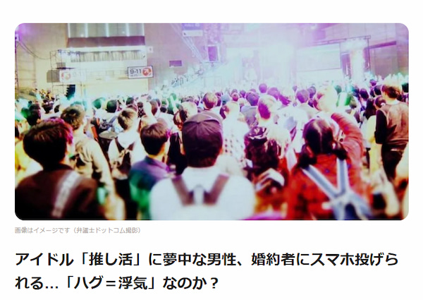 トップページ コラム インタビュー記事が掲載されました「弁護士ドットコム」 公開日:2026.03.09 インタビュー記事が掲載されました「弁護士ドットコム」 監修記事 弁護士ドットコムにて、古関弁護士のインタビュー記事が掲載されました。 ■インタビュー記事 アイドル「推し活」に夢中な男性、婚約者にスマホ投げられる…「ハグ=浮気」なのか? 【運営サイト】 弁護士ドットコム アイドルや配信者などを応援する「推し活」をめぐり、パートナーとの関係でトラブルが生じるケースも見られます。 しかし、「推し活」が浮気に該当するかどうかは、ケースにより判断が異なります。そのため、迷いや不安がある場合は早い段階で弁護士などの専門家にご相談ください。 コラム一覧へ